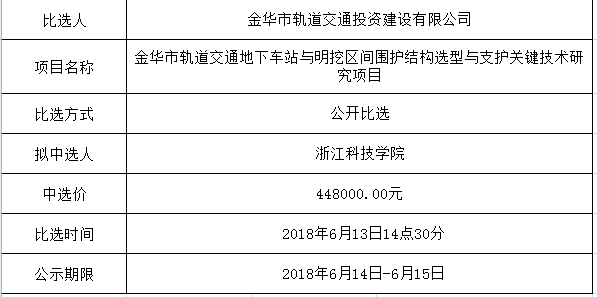 金華市金義東軌道交通有限公司運(yùn)營(yíng)2025年安全質(zhì)量活動(dòng)項(xiàng)目的中標(biāo)候選人公示