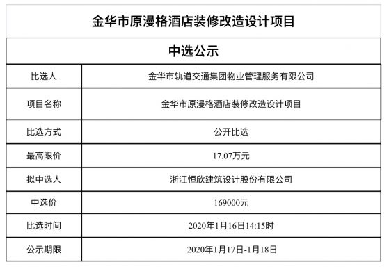 金華市金義東軌道交通有限公司運營云平臺擴容項目的中標(biāo)候選人公示